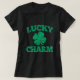 T-shirt afortunados do encanto. Dia de São Patrício feliz. Gráficos afligidos verde do trevo.