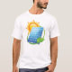 Todos nós precisamos de energia e a energia solar é uma boa opção. Aproveite o poder do sol. Esta design é sobre energia solar com um painel solar captando a luz do sol brilhante. Este design de energia solar parece excelente nesta mulher ativa. Perfeito para si mesmo ou como presente