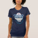 Uma camiseta com uma ilustração fofa de um urso azul vestindo um chapéu de enfermeira com um pequeno coração. Também vestindo uma máscara protetora e tem um estetescópio azul.