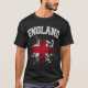 The Cross of St. George, the national flag of England, is incorporated in to a splatter design. The text "ENGLAND" is slightly arched above the design, and the whole design has been given a slightly distressed look.