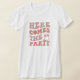 Camiseta engraçada e fofa para as amigas da noiva. Texto simples que diz Aqui vem a festa com letras cor-de-rosa e um anel cor-de-rosa.