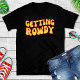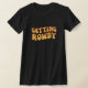 Camiseta engraçada para despedida de solteira. Texto simples que diz Ficando Animada com letras amarelas que saltam em uma camiseta preta. A turma da noiva vai adorar essas camisetas divertidas para uma festa de fim de semana entre meninas.