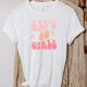 Camiseta branca engraçada e fofa para despedida de solteira para as amigas da noiva . Texto simples que diz Vamos lá garotas com estilo retrô e estrelas. Várias cores para escolher