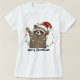 Um design engraçado de férias de inverno de guaxinim fofo enredado em luzes de Natal, que diz: "Feliz Natal"