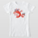 Camisa engraçada de menina monstro com uma ilustração digital dinâmica de duas criaturas estranhas com formas estranhas - uma grande e uma pequena - ao lado uma da outra e sorrindo. O grande tem três rabos-de-cavalo e está sorrindo alegremente mostrando seus dentes afiados. Seu amiguinho tem um penteado estranho de apenas três cabelos.