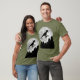 Uma paródia engraçada da cultura da pop, que lembra o anos 80, esta design apresenta um T-Rex voando em sua bicicleta, silenciado contra uma lua de cheio brilhante no fundo. Faz uma escolha excelente para a sua coleção de camisetas e um bom começo de conversa.