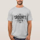 Esta camiseta divertida do noivo mostra “Equipe do Noivo” em uma fonte serifada retrô em negrito. Ícones sutis de gravata borboleta e bigode complementam o texto, dando à camisa um clima clássico e divertido. O design monocromático preto-no-cinza é perfeito para fotos da festa de despedida de solteiro ou lembrancinhas do jantar de ensaio, unindo os padrinhos no estilo vintage