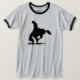 Um dos eventos de esportes os mais grandes dos rodeios: Equitação do Bronc da sela. Silhueta preta & branca do desenho do cavaleiro no cavalo broncing. Ponto morto do género; poderiam ser o vaqueiro ou a vaqueira.