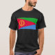 Bandeira da Eritreia. A atual bandeira do Estado da Eritreia foi adotada no dia 5 de dezembro de 1995 e utiliza a bandeira da Frente de Libertação da Pessoas da Eritreia, com a coroa com símbolo de ramificação de oliveira ereta, derivado da bandeira de 1952. A bandeira é dominada por um triângulo vermelho que se estende do guincho à mosca, com triângulos verdes e azuis complementares acima e abaixo. Verde significa a fertilidade do país, respectivamente, para a agricultura; azul significa mar (mar vermelho); e vermelho para o sangue perdido na luta pela liberdade. No triângulo vermelho, um símbolo amarelo de coroa, com 14 folhas em cada lado, derivadas da bandeira de 1952, substitui a estrela amarela da bandeira EPLF.