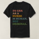 Camiseta Errar Como Enfermeira É Humano Não É Crime Salvar
