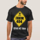 Erro 404 - Figurume Não Encontrado. Comemore as festividades do Dia das Bruxas com um toque de humor computacional. Mostre esta mensagem engraçada e você não precisará encontrar uma fantasia. Esta design apresenta um sinal amarelo de estrada com um sotaque assustador no crânio e nos ossos. Faz uma fantasia genérica de Halloween excelente.