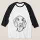 Camiseta esboço desenhado pela mão preto, cachorrinho branc