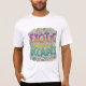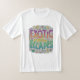 Um design de camiseta vibrante apresenta o texto "Escapas Exóticas" em um gradiente ousado e arco-íris. Cada letra se rompe com uma cor diferente, criando uma exibição dinâmica e atraente. O texto é centrado em uma camiseta branca comum, perfeita para mostrar o espectro do arco-íris.