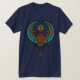 Um design inspirado egípcio do besouro do escaravelho com as grandes asas outstretched de cada lado. Acima do besouro a cabeça é um design circular com um Ankh no centro.
