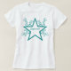 Super-star girando design em teal, bonito e divertido, apresentando uma grande estrela e uma cascata de espirais. Esta camiseta adorável daria um presente maravilhoso para qualquer mulher. Produto totalmente personalizável. Altere as cores de fundo, texto, fontes e fontes para dar a este produto seu próprio toque pessoal!