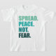 Espalhar a paz sem medo é uma boa vibração de que temos de nos espalhar. O que seria do mundo sem paz? Ao ter esta simples design de tipografia, você definitivamente dá forte inspiração aos outros para sempre espalhar a paz, não o medo ou a guerra. O vamos espalhou a paz pelo tema pacífico das nossas t-shirts, capuzes, canecas, etc.