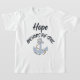 A t-shirt desta rapariga apresenta uma fonte única de impressão de ossos pretos com letras negras, contorno azul claro e citação bíblia que mostra as palavras "Esperança Ancora A Alma" com um ícone azul de âncora com corda por baixo deste tema de citação baseado na bíblia. Esta camisa apresenta um ajustado relaxado para a forma feminina feita a partir de 100% de algodão esta camisa é durável e macia que faz uma combinação de excelentes.