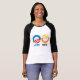 Camiseta feminina mangas raglan 3/4 da Bella+Canvas, Branco/Preto, Adulto G