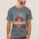Esta design de camiseta apresenta uma ilustração dramática e visualmente espantosa de uma tempestade de trovoada em força de cheio. O elemento central é uma nuvem vibrante e torcida em tons de roxo, rosa e laranja, girando com energia intensa. Da nuvem, um poderoso raio ataca, iluminando o céu com uma brilhante luz amarela e branca. O impacto do raio sobre o solo é representado por linhas radiantes que se espalham para fora, acrescentando ao local uma sensação de movimento dinâmico. O fundo inclui um céu gradiente em transição do céu para o azul, com estrelas brilhando ligeiramente acima, criando uma atmosfera celestial. Abaixo da tempestade, uma paisagem escurecida com árvores silenciadas e nuvens distantes edifica a imagem, enfatizando a escala e o poder da tempestade. Este design capta a maravilhosa beleza da fúria da natureza, fazer-a como uma peça perfeita para aqueles que apreciam o poder bruto e a elegância das tempestades.