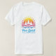 Esta camiseta é excelente para pessoas que são espíritos livres e adoram viagem ou explorar lugares. Uma cena de abstrato é ilustrada com o sol, ondas, árvores e pássaros com gradiente colorido. O texto azul diz "Espírito Livre" e "para além dos limites" com um script e fonte san serif. Um chapéu correspondente também está disponível.