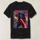 Camisa "Espírito Selvagem". Design detalhado de um guerreiro panda em uma armadura cibersamurai, em pé em uma pose heroica em cima de uma colina, segurando uma katana brilhante. Sol vermelho no fundo, sombras e iluminação dramáticas, blindagem futurista com sotaques neon, face expressiva e determinação nos olhos.