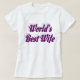 Camisa com a melhor esposa do mundo em texto roxo 3D. Camisa disponível em vários estilos e cores com mangas longas ou curtas.