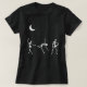 Esta design esquelética engraçada apresenta esqueletos dançando sob um céu estrelado e lua.
