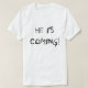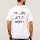 Todo o estilo da camisa ou da jaqueta com ESTÁ VINDO! na parte dianteira e NO SENHOR JESUS CRISTO, JESUS, JESUS CRISTO ou SENHOR na parte traseira.