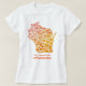 Estado de Wisconsin Silhouette Hearts & Hometown T-Shirt - A forma icônica de Wisconsin é cheia de corações de tamanhos variados. A via colorida é cor de laranja variável com pistas de vermelho. Por baixo do esboço do estado está um lugar para a sua cidade natal. Você pode colocar qualquer cidade naquele lugar — perfeito para aqueles que nunca conseguem ver sua cidade natal em um mapa! Até as pequenas aldeias não incorporadas podem ser representadas na sua design. Uma camisa excelente para mostrar seu orgulho e amor pelo estado em que você foi criado, viver ou apenas amar.