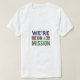 estamos na missão T-Shirt. Este design de camiseta declara seu propósito com uma vibração vintage! "Estamos em uma Missão" é exibida em um gradiente ousado, multicolorido, com cada palavra uma sombra diferente de olho. Uma sutil textura em apuros adiciona um toque de história e determinação. Esta design é perfeita para quem tem um objetivo e está pronto para agir, canalizando um espírito clássico em sua jornada.