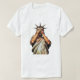 Camiseta Estátua da Liberdade cobrindo seu rosto com vergon