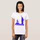 A estátua da Liberdade e a silhueta de menino ajoelhado em cor azul real com palavras de verdade, paz e harmonia T_Shirt. O texto pode ser personalizado.