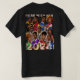 Um grupo de jovens adultos diversificados é representado, cada um vestindo jaquetas coloridas de diversidade adornadas com letras gregas. O texto "NÓS ESTAMOS COM ELA" aparece no topo, implicando unidade ou apoio, e o ano "2024" é destacado no final.