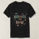 Esta design de camiseta apresenta a frase "Navegar no Agora." em letras ousadas e geométricas, criando um olhar moderno e atraente. O texto é colocado contra um pano de fundo dinâmico de formas e linhas coloridas, sugerindo movimento e energia. O design geral transmite uma sensação de impulso para a frente e encoraja o usuário a abraçar o momento presente.