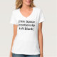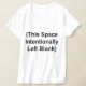 Uma camiseta para as mulheres com as palavras "Este Espaço Intencionalmente Deixado Vazio" entre parênteses na frente.