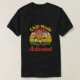 Uma design divertida e brincalhona com um cone alegre de sorvete de desenho animado com braços, pernas, e um grande sorriso, dançando sob a frase "Modo de resfriamento ativado." O fundo tem um pôr do sol vintage em cores retrorativas quentes, adicionando uma vibração nostálgica e relaxada do verão. Excelente para t-shirts, canecas ou artigos relacionados com o Verão.