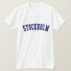 Verifique para fora este t-shirt de Éstocolmo! É você de Éstocolmo, suecia? Você tem um amigo ou um membro da família que amem Éstocolmo, suecia? Em caso afirmativo, este t-shirt da "bandeira" é exatamente o presente que você está procurando! As características de design "Éstocolmo" na rotulação arqueada do marinho na pia batismal clássica da faculdade.