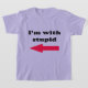 Um slogan clássico de t-shirt tornado famoso nos anos 70 e 80, "I'm With Stupid" veio representar piadas irônicas de t-shirt datada. Isso é perfeito para festas retrorreflectoras ou vestidos de rico, assim como um piscar os olhos conhecido do passado. A piada, caso não saibam o que "Estou com Estúpidos" significa, é que a seta aponta para a pessoa ao seu lado, por isso estão, de fato, a chamá-los de estúpidos. Pobre-os.