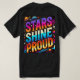 A design de camiseta "Stars Shine Proud" apresenta um céu noturno vibrante cheio de estrelas brilhantes, simbolizando esperança, unidade e brilhantismo. No centro, uma estrela maior irradia luz, representando orgulho e individualidade. As estrelas circundantes formam constelações sutis, criando um sentido de união e de empoderamento. A paleta colorida combina azuis profundos da meia-noite com dourados e silenciosos brilhantes, evocando uma atmosfera celestial. O olhar geral é inspirador e visualmente impressionante, perfeito para aqueles que querem vestir seu orgulho e confiança com estilo.