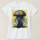 Camiseta etérea de design e capturando a graça e o movimento de uma água-viva em papel preto pálido. com fundo de cor clara para design de camiseta