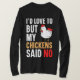 Eu adoraria, mas os meus filhotes disseram que não havia negócios com aves de capoeira