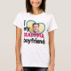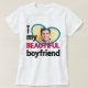 Essa camiseta adorável é o presente ideal para qualquer namorada ou namorado apaixonado em ocasiões como Dia de os namorados ou aniversários. A legenda diz "Eu amo (coração) meu namorado LINDO" em fontes modernas cor-de-rosa-preto e escuro. Facilmente personalizável adicionando uma foto personalizada em um grande quadro azul em forma de coração.
