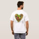 Um morango suculento na frente e um conjunto de vegetais e frutas frescos no verso ajudam a declarar "Eu amo carboidratos" na tíbia "Vegan For Life" com acabamento seco e duplo.