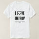 Simples camiseta cristã IMPROV com TEXTO PERSONALIZÁVEL. Presente ideal para cristãos que adoram testemunhar a pessoas. A tipografia ousada com contornos cardíacos diz: "EU AMO IMPROV" e o TEXTO PERSONALIZÁVEL diz: "ESPÍRITO SANTO TE ENSINARÁ O QUE DIZER", que é baseado no verso da Bíblia cristã de Luke 12:12. Este texto pode ser PERSONALIZADO com seu nome, nome do clube ou organização ou outro texto preferencial (ou você pode simplesmente excluí-lo). Outros designs de improvisação disponíveis na Coleção. Também em preto.