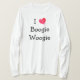 design de coração "I Love Boogie Woogie" (vermelho e rosa quente) em camisetas bonitinhas para amantes de música. Ideias bonitas de presente.
