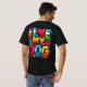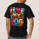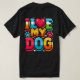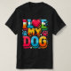 A design da camiseta apresenta a frase "Eu amo meu cachorro" em letras ousadas e brincalhonas, com um símbolo cardíaco substituindo a palavra "amor". Abaixo ou ao redor do texto, há ilustrações bonitinhas relacionadas a cães, como estampas de pata, ossos ou uma silhueta de um cachorro. O design dá uma vibração quente e divertida, perfeita para os amantes de cachorros expressarem seu afeto por seus companheiros peludos. A paleta de cores é simples e alegre, com cores contrastantes para fazer o pop de design numa variedade de fundos de camisetas.