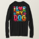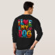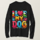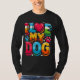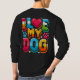 A design da camiseta apresenta a frase "Eu amo meu cachorro" em letras ousadas e brincalhonas, com um símbolo cardíaco substituindo a palavra "amor". Abaixo ou ao redor do texto, há ilustrações bonitinhas relacionadas a cães, como estampas de pata, ossos ou uma silhueta de um cachorro. O design dá uma vibração quente e divertida, perfeita para os amantes de cachorros expressarem seu afeto por seus companheiros peludos. A paleta de cores é simples e alegre, com cores contrastantes para fazer o pop de design numa variedade de fundos de camisetas.