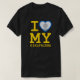 Crie o seu I Love My Namorada mais do que nunca Photo Text T-Shirt com esta camisa moderna e engraçada modelo com a paleta de cores amarela e azul da Ucrânia e uma fonte legal de serifa e namorada de serifa em um enorme coração azul. Adicione sua própria foto, seu nome ou qualquer texto personalizado. A design de camiseta "I love My Namorada" é inspirada pelo clássico design gráfico de camiseta "I love NY" feito por Milton Glaser, e usei a fonte Courier New Slab em vez da fonte original de serifa arredondada da serifa americana Typeworks usada por Glazer. Faça seu próprio presente único para seu namorado com isso eu amo minha camiseta namorada!