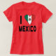 A camiseta feminina usa uma bandeira mexicana em forma de coração em vez da palavra AMOR. O design lê EU AMO MÉXICO. A bandeira é verde, branca e vermelha com uma águia no centro. Divertido de usar em celebrações do Cinco de Mayo ou em qualquer ocasião especial. O design aparece na frente e nas costas.