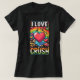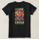 A design de camiseta para "I Love My Crush" apresenta um tema lúdico e romântico com letras arrojadas e vibrantes. A frase "I Love" é escrita em uma fonte grande, atraente, com a palavra "Crush" em um estilo diferente, possivelmente com um símbolo cardíaco ou embelezamentos lúdicos. As cores brilhantes como vermelho ou rosa para os elementos cardíacos contrastam com o fundo, fazer-o como design divertido e jovem. O olhar geral é relâmpago, perfeito para expressar afeto com um toque de capricho.